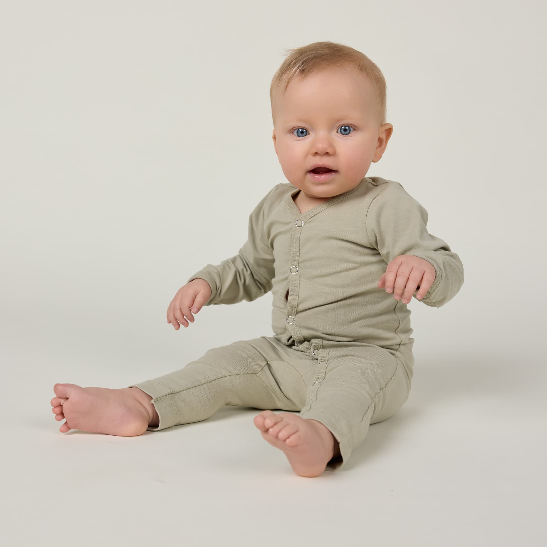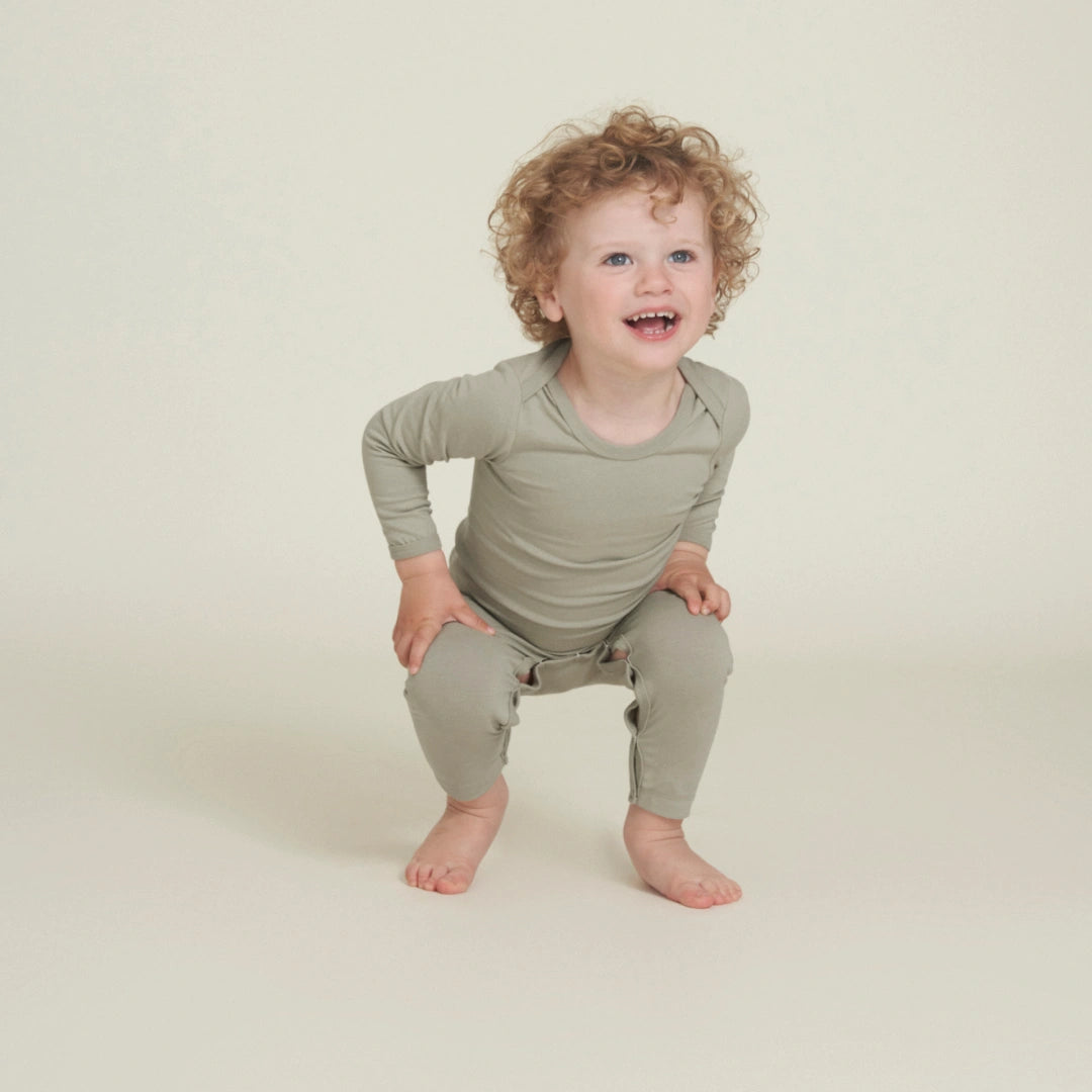 All our basics for baby are dyed with natural materials such as olive leaves and pomegranate peels. We have a wide selection of different bodystocks and jumpsuits, as well as leggings and t-shirts in our light jersey quality and stretchable rib quality.