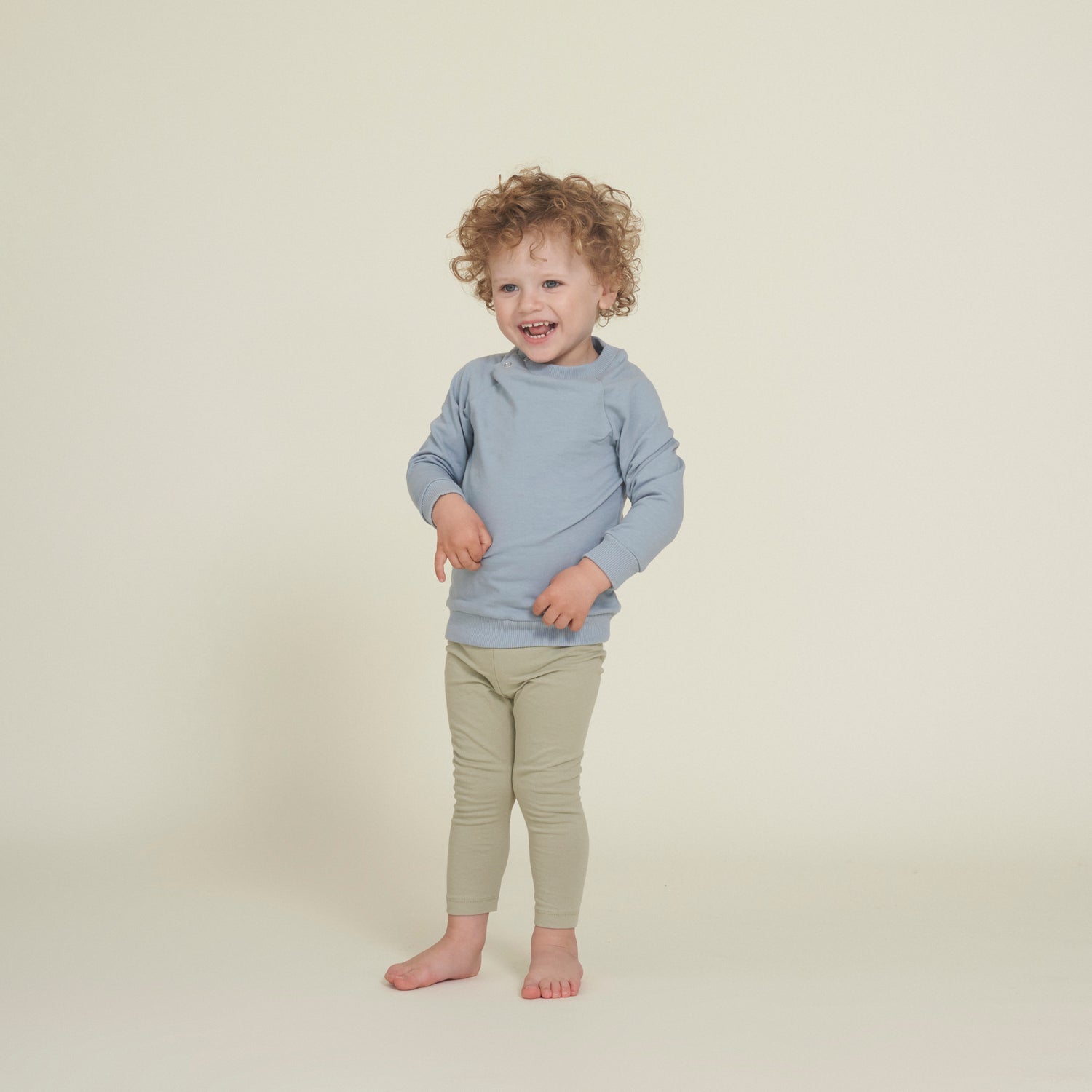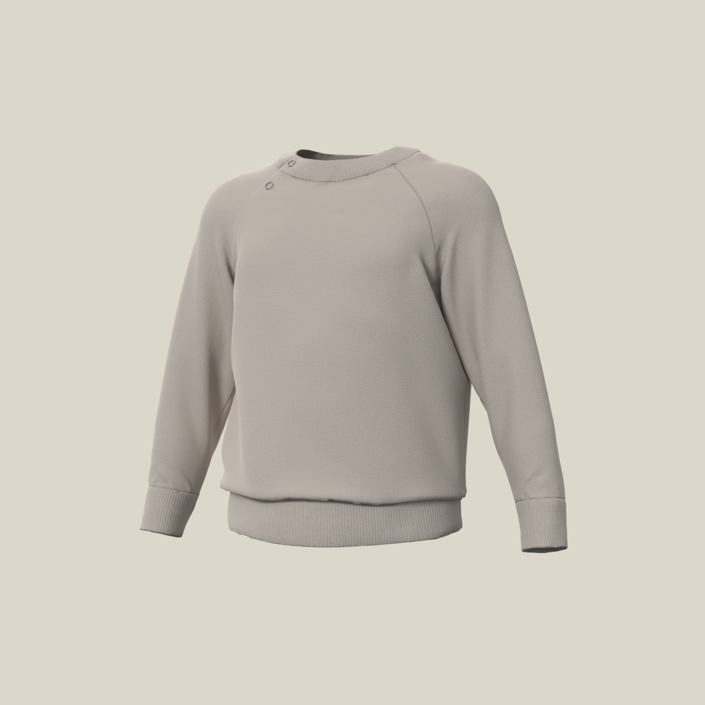 Sweatshirt for baby in organic cotton. The sweatshirt is dyed with residuals from agriculture, like dried pomegranate peels and olive leaves. The sweatshirt is made in our sweat quality, that has a brushed inside to provide the most softness without any use of chemicals. The sweatshirt for baby has raglan sleeves and two push buttons at the right shoulder - to make it easier to get the baby head through the neck opening.