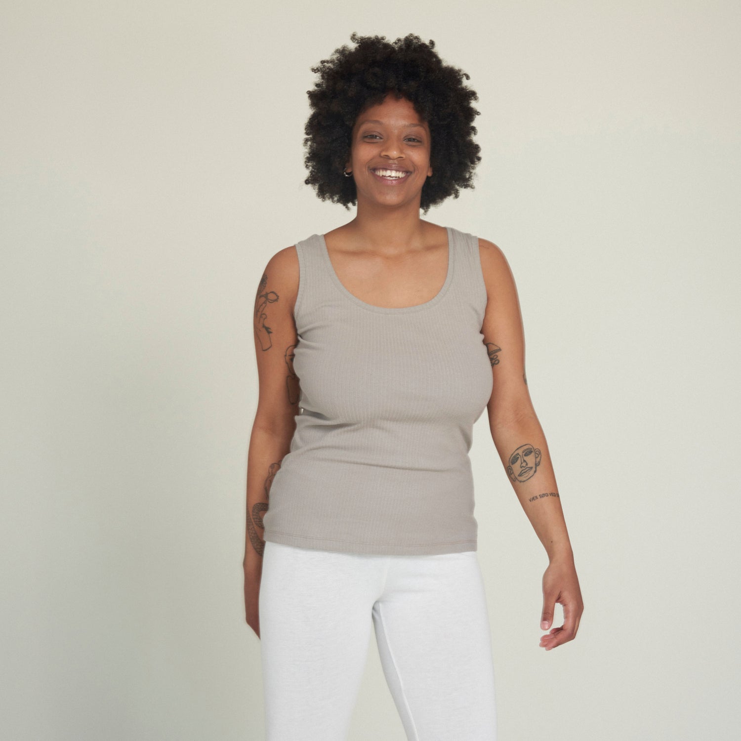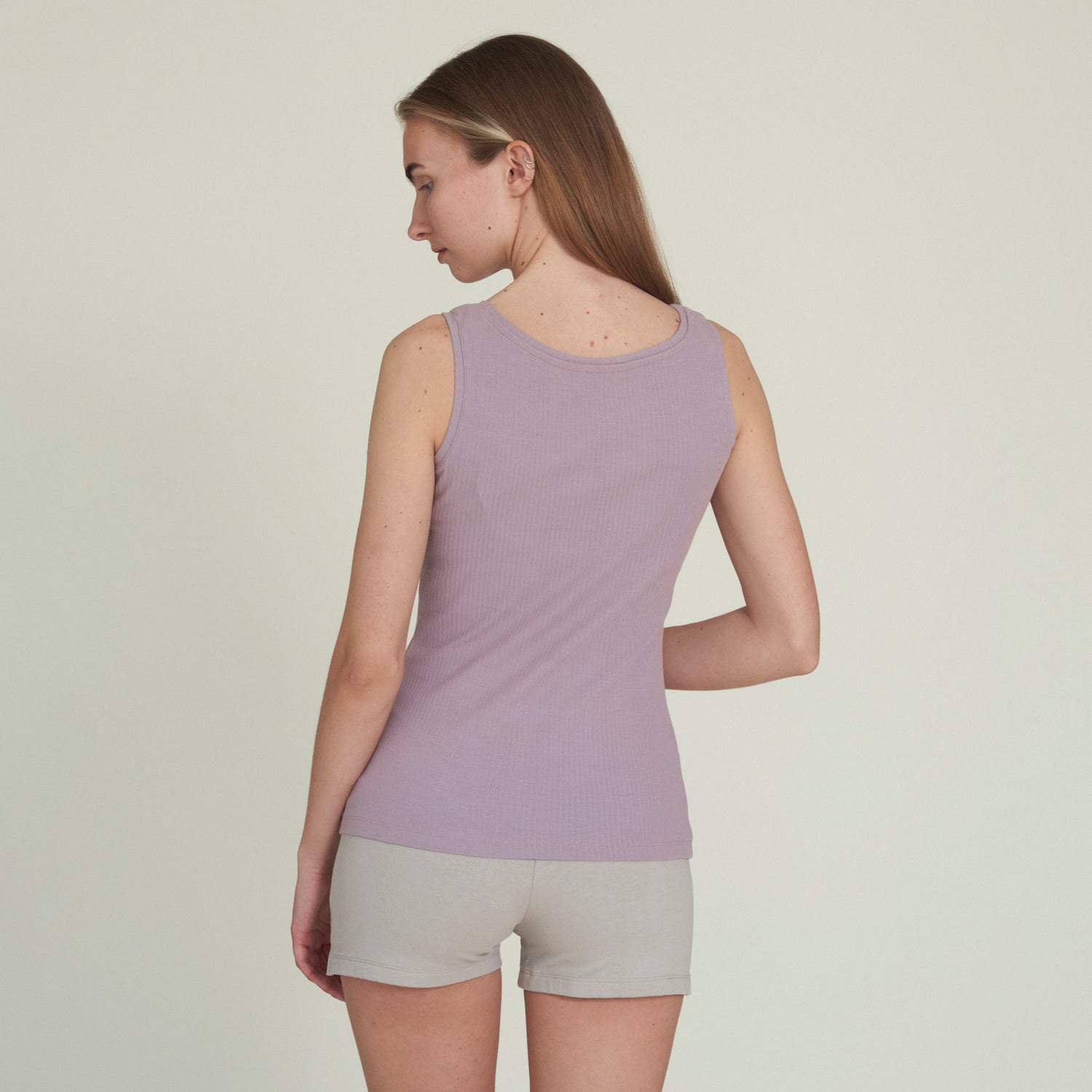 GOTS certified tank top for women. The tank top is made in our stretchy rib quality, where the surface provides extra stretchability. The stretch and the tight fit makes the tank top suitable as an inner layer underneath a shirt or dress. The tank top is dyed with plant powders - in that way the skin is not exposed to any synthetic chemicals, when you wear the tank top.